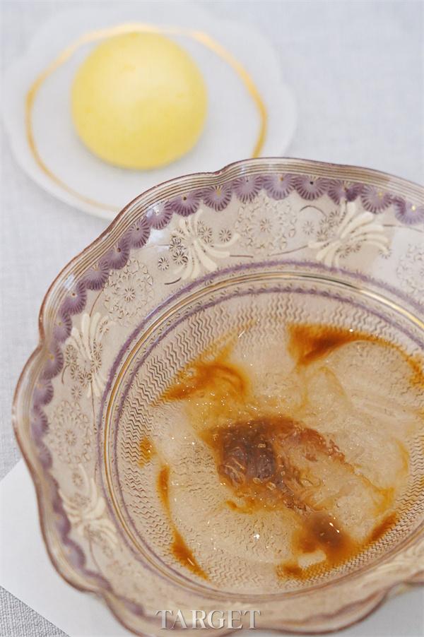 川人喜食冰粉,透着手作气孔的冰粉作为平实的载体,因承载着不同食材而染上不同韵味。红沙糖浆,燕窝,冰粉搭配着古典优雅的食器,清爽如掠过峨眉的微风。橙皮加入面粉揉制成面皮,内里由陈皮豆沙做馅,橙子的一生,这样轻巧的呈现在这一只橙香栗子豆包中,朴拙又自然。