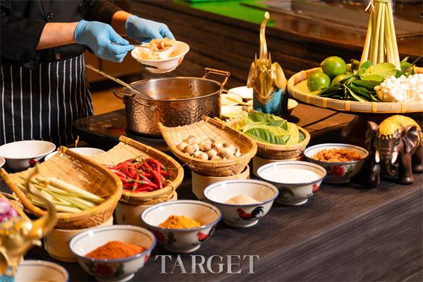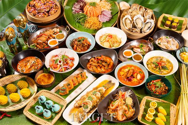 甜品舞台由榴莲糯米饭领衔主演,搭配芒果糯米饭的清新与椰奶南瓜羹的温润,完美收官这场美食盛宴。每逢周末,酒店更将泰式"捞生"仪式以现代方式重现,配以泰式风情舞蹈表演,打造沉浸式餐饮娱乐新体验。