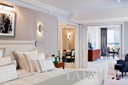 转角拾阶而上,终于可以进到房间里面。因为面朝大海,巴里耶尔马捷斯蒂克酒店几乎每个房间都能够看到迷人的海景。视野中,美丽的拉克鲁瓦塞特大 道(Boulevardedla Croisette)两侧,曲线优美的沙滩海湾和风格迥异的雅致酒店,与蔚蓝的大海和高大翠绿的棕榈树交相映衬,营造出了一种特别的宁静。一眼望去,不能 不说也是一种诱惑。